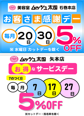 お得なサービスデーを実施しています☆彡